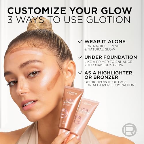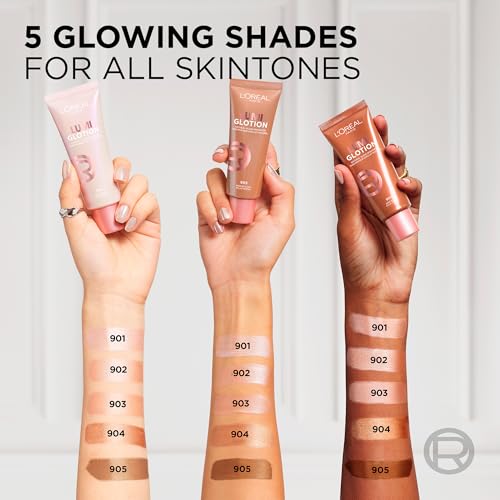 L'Oreal Paris - هايلايتر سائل لومي جلوشن ناتشورال جلو من لوريال باريس، محسن لمظهر الوجه والجسم مع الجلسرين وزبدة الشيا من بيرفكت ماتش، 903 فير جلو، 40 ملليلتر