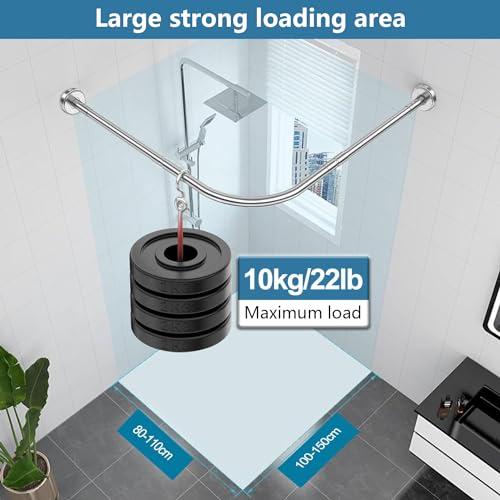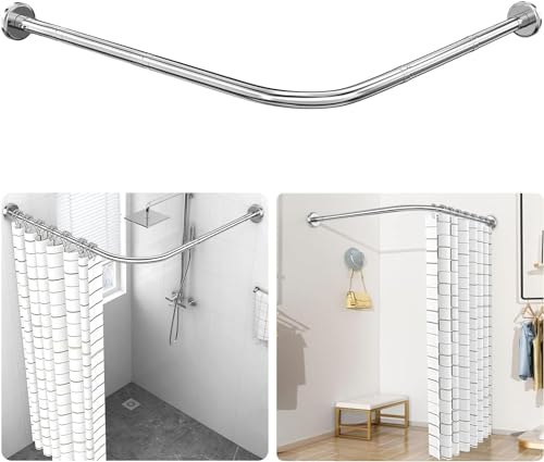LOLLDEAL - قضيب ستارة حمام منحني على شكل حرف L، قضيب ستارة دش قابل للتمدد متعدد الوظائف من الفولاذ المقاوم للصدأ 304، قضيب ستارة منحني، تركيب بدون ثقب للحمام وحوض الاستحمام ومتجر الملابس، (80 سم - 1.49 م)