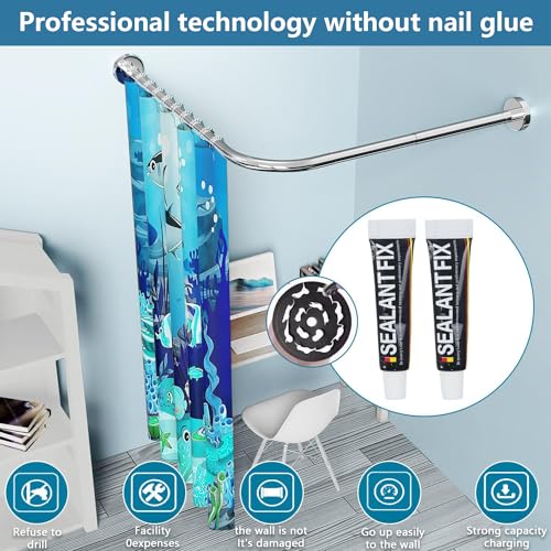 - 【قضيب ستارة الحمام من النوع "L"】يستخدم تصميم قضيب ستارة الحمام على شكل حرف L ستائر لفصل المساحة التي تحتاجها ويمنحك مساحة أكبر في الدش، مثالي لمساحات الزوايا. قطر قضيب الدش بزاوية 2.5 سم، يرجى ملاحظة أنه عند شراء ستارة الحمام، يجب أن يكون قطر الخطاف أطول. ملاحظة: لا توجد ستارة حمام.