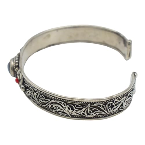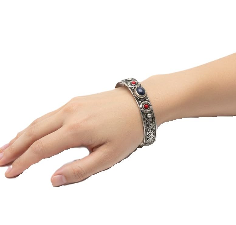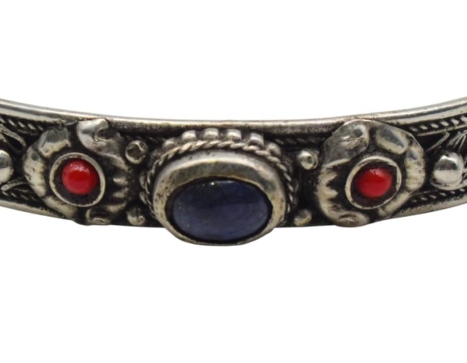 Indian Stones MA - Labs Lazuli & Coral Indian Luxury Bracelet Silver Mixed With Copper Less Than Caliber Inlaid With Natural Gemstones - Blue Red Awd1