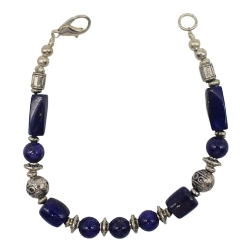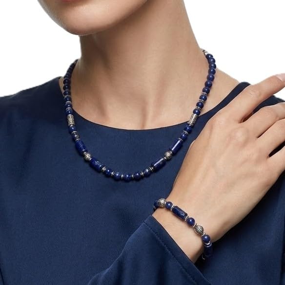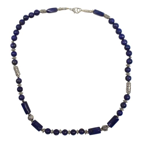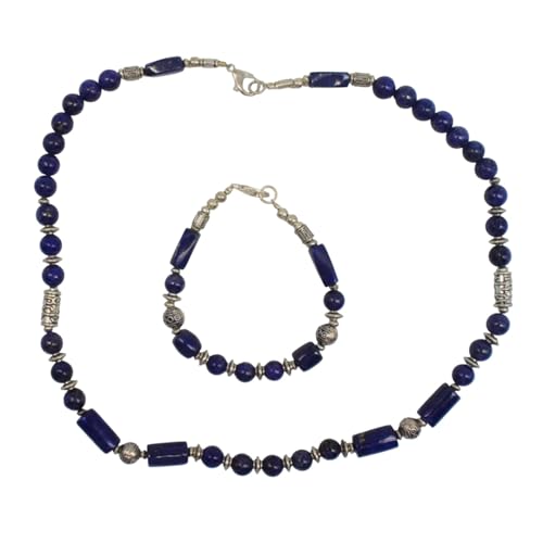 Indian Stones MA - طقم عقد وانسيال هندي فاخر من الفضة المخلوطة بالنحاس اقل من العيار مرصع بأحجار طبيعية كريمة من لابس لازولي، قطعتين - أزرق Set-3-D