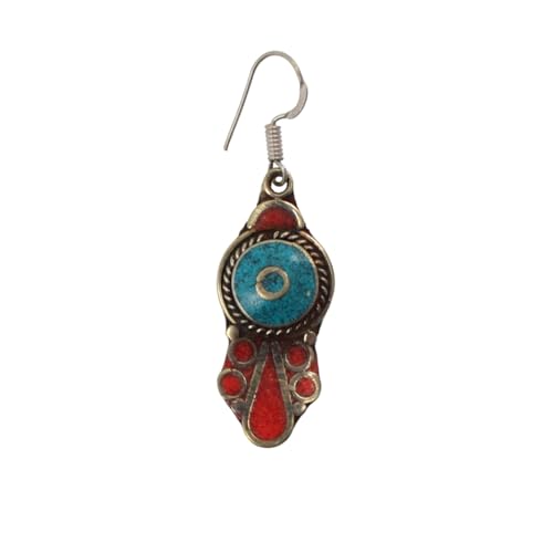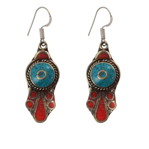 Indian Stones MA - LABS LAZULI Women's Luxury Earrings Silver Mixed Copper Less Than Caliber Inlaid With Natural Gemstones By Labs Lazuli And Coral Awd1