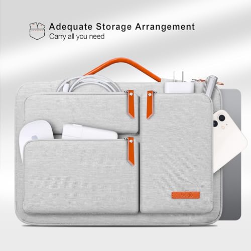 - Multi-Pocket Storage & Leather-Upgraded Zipper: Say goodbye to the chaos of tangled cables and scattered accessories. The laptop bag with pocket boasts a thoughtfully designed exterior with 3 various pockets, ensuring that each device and accessory finds its dedicated space. From laptops to chargers, mouse to notepads, experience the convenience of organized efficiency at your fingertips. The leather zipper closure not only enhances protection, it facilitates easy access to your laptop.