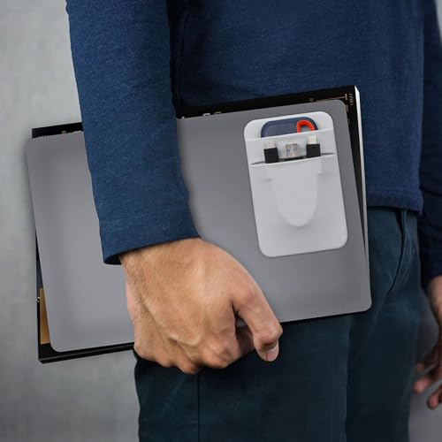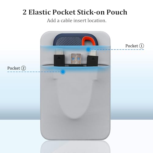 - حافظة تُلصق على الشنطة بجيبين: كل ما يجب فعله هو فتح العبوة، ثم تنظيف سطح اللاب توب أو التابلت وبعد لصقه على غلاف هارد SSD الخارجي. لا داعي للبحث في شنطتك للعثور على أجهزة USB والكابلات الخاصة بك الآن. يرجى الملاحظة أنّ إزالة الحافظة اللاصقة وإعادة تثبيتها بشكل متكرر قد يضعف قوة اللاصق.
