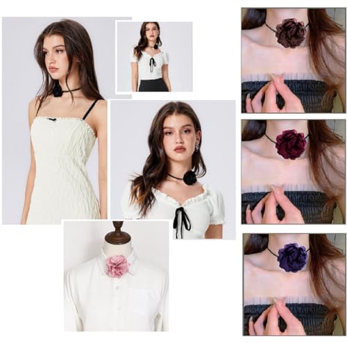 Generic - Lace Cashmere Flower Choker Necklace Chain Chiffon Chokers for Women Camellia Daisy Flower Choker Necklace for Girls Spring Summer French Style (Cashmere)