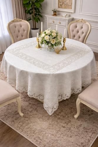 Generic - Lace Embroidery Dining Table Runner, White, 150cm x 150cm, Classic Luxury Embroidered Fabric, Suitable for Round and Square Tables
