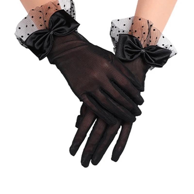 Generic - Lace Gloves - Elegant short black lace gloves with bow detail, perfect for tea parties, weddings, proms, and evening events, offering stylish sun protection and vintage charm for women and girls.