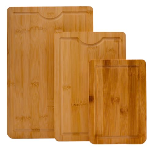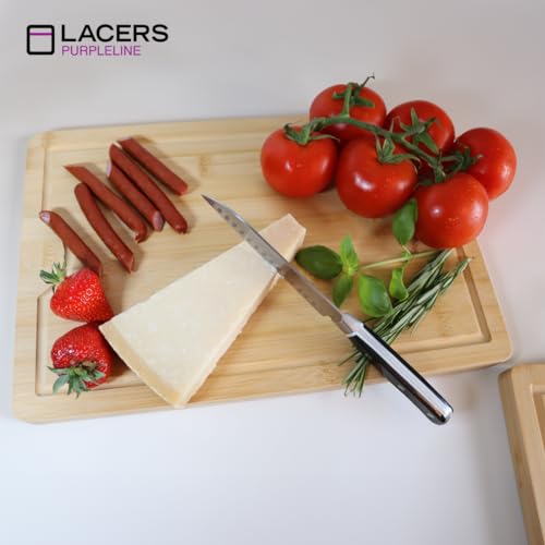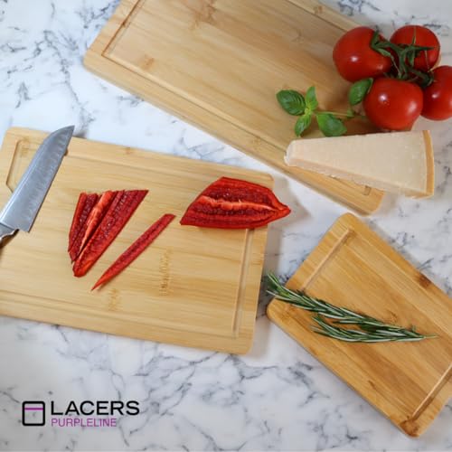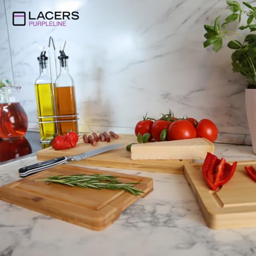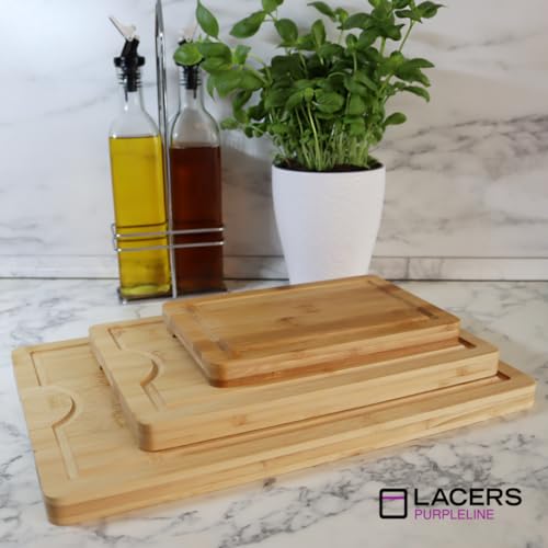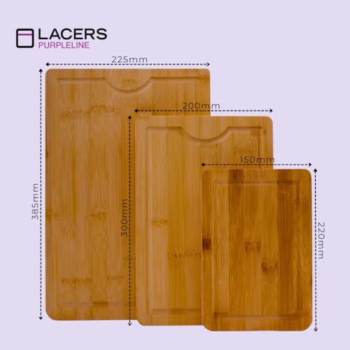 Lacers - طقم لوح تقطيع خشبي مكون من 3 قطع ومصنوع من البامبو وآمن في غسالة الأطباق ومناسب للمطبخ والفطار ومناسبة لتغطية الموقد من تشكيلة بيربل لاين من ليسرز