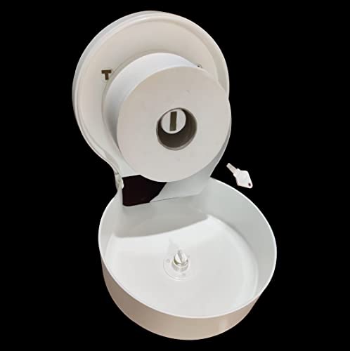Lacot - موزع مناديل تواليت صغير جامبو من لاكوت مع نظام قفل بمفتاح امان وغطاء متين غير قابل للكسر - لفة بحد اقصى 10 سم وقطر 23 سم (ابيض)