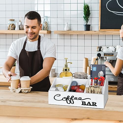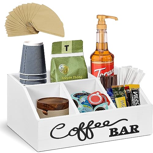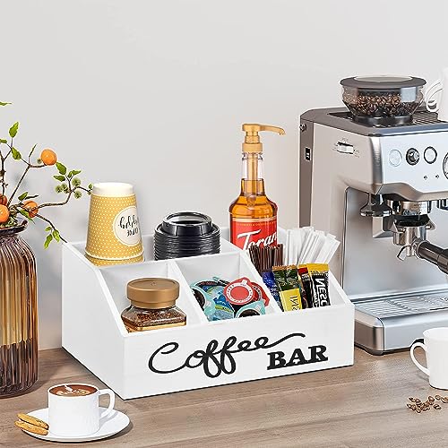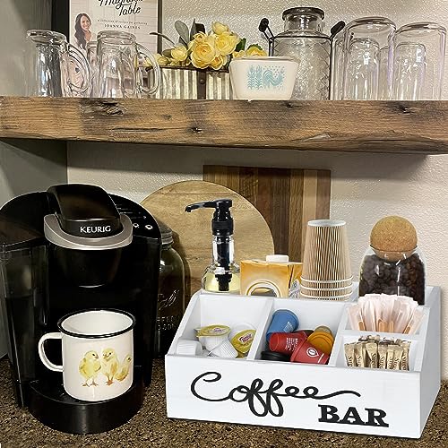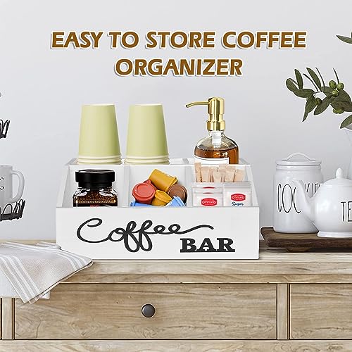 LADESIGGN - Wooden Coffee Bar Accessories Organizer for Countertop, Coffee Station Organizer for Coffee Pods, Farmhouse Coffee Cup Holder and Storage Box, Large Space Coffee Supplies Holder, White