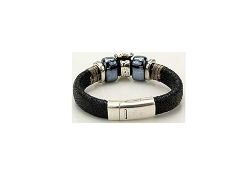 Other - Ladies Bracelet black leather and metal with glass rings and form Puma item No 322 - 31
