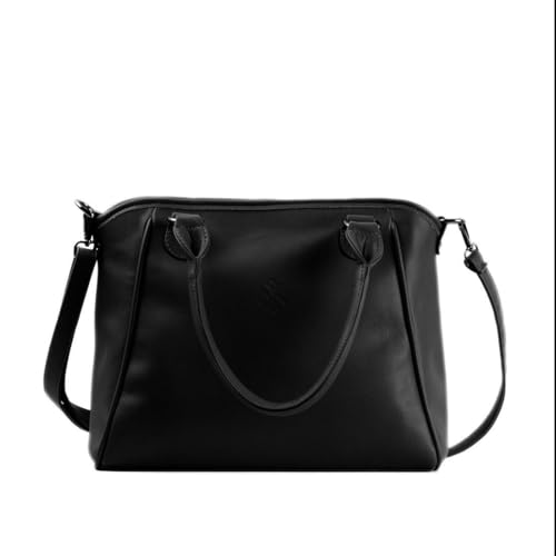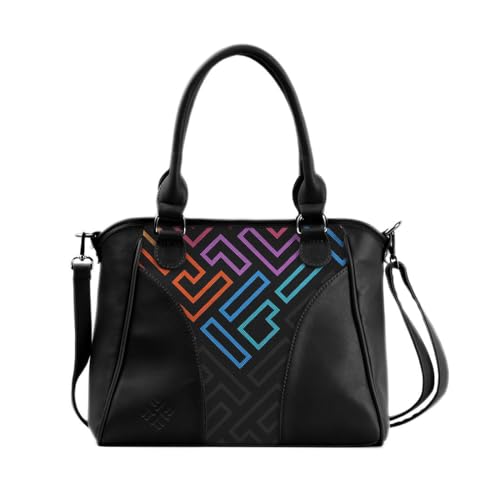 Generic - Ladies Leather Handbag with Geometric Rainbow Pattern, Black Satchel with Shoulder Strap