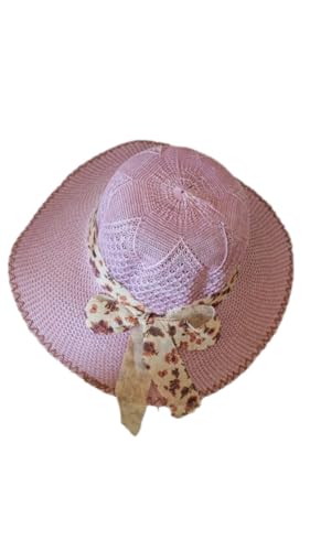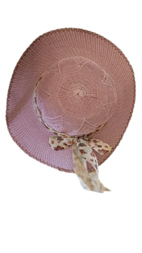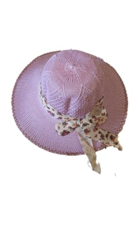 MAPKA - Ladies' Summer Sun Hat, Purple Crochet Straw with Floral Accent, Wide Brim