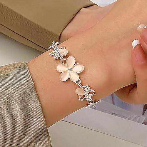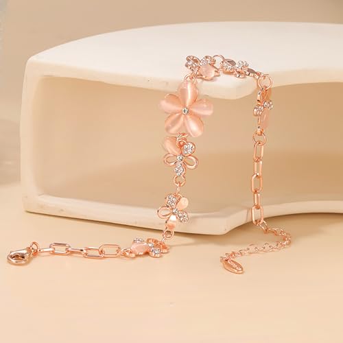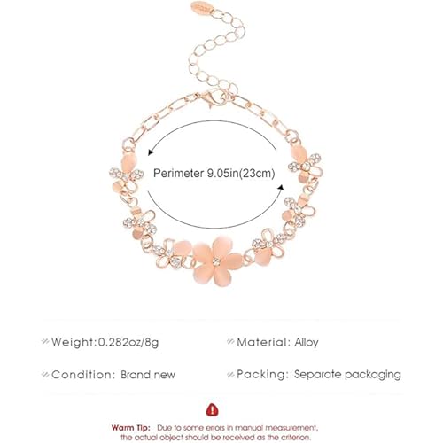 fashion mania - سوار وخلخال بتصميم زهور جميلة ومنعشة، مصنوع من خليط معدني مع كريستالات، وصلات قابلة للتعديل، انيق ورائع، مناسب للارتداء اليومي للنساء