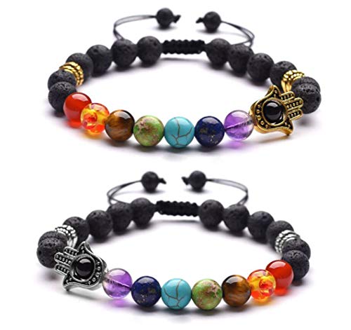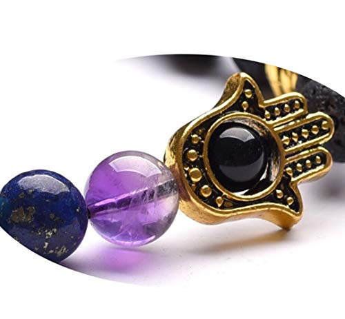 LAFATINA - اساور خرز باشكال المجموعة الشمسية من لافاتينا، مجموعة اساور شاكرا للرجال والنساء من الاحجار الكريمة واللافا، مناسبة لممارسة اليوجا, حجر