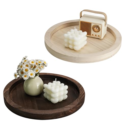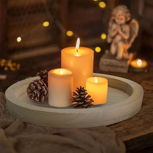LAGAHS - LAGAHS 2PCS Candle Holders, Round Wooden Tray, Rustic Decorative Tray, 11.2in / 28.4cm Candle Sticks Holder for Pillar Candles Home Kitchen Decor Accessories Living Room Table Decorations