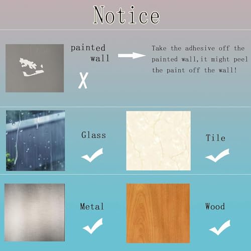 - سهل التركيب: امسح الحائط وقم بنزع الغلاف من الخلف، ثم اضغط على الخطاف ذاتي اللصق على السطح الأملس لدقائق.