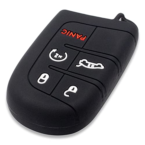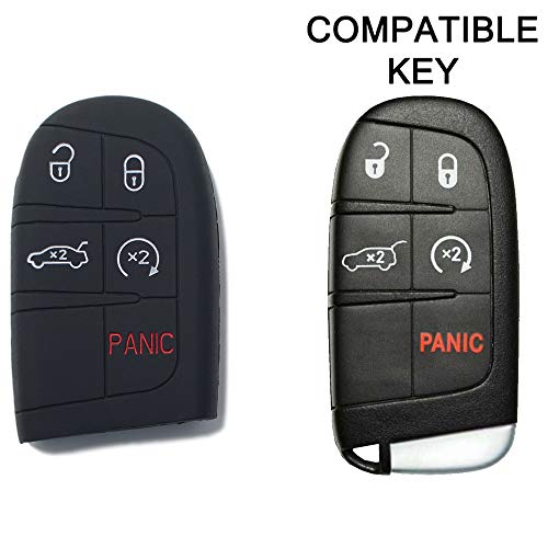 Lage - Lage [Keychain] Silicone Shell for Jeep Renegade Cherokee Compass Wrangler Fiat 500X Fremont Chrysler Dodge (See Photo Compatibility) 5 Keys (BLACK)