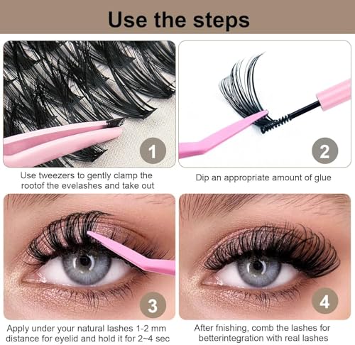 - Instructions: Pick up the cluster eyelashes from the BAND of clusters. Apply individual lash glue and wait for 30 seconds. Then wear the lashes below your own lashes. So easy to finish the lash extensions. [Remind: stack the cluster lashes with other strip lashes to get a fuller look.