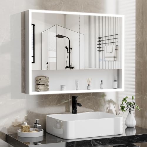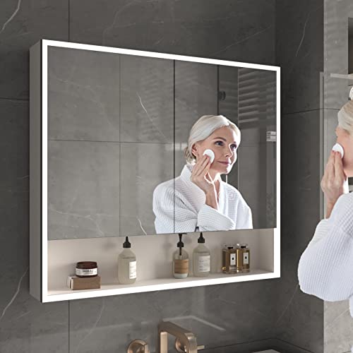 LALAHOO - وحدة تخزين أدوية بإضاءة ليد، خزائن أدوية للحمام مع مراية، بتركيب على السطح أو داخل الحائط مع خاصية تعتيم - 81.28 × 60.96 سم