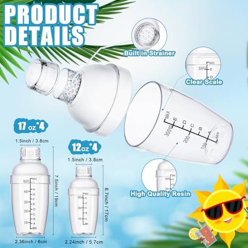 Lallisa - لاليزا مجموعة شيكر كوكتيل بلاستيكية مكونة من 8 قطع مع موازين وكوب شيكر شفاف مع قياسات ومصفاة، اداة خلط بلاستيكية للشاي والقهوة والحليب (350 سم مكعب/12 اونصة و550 سم مكعب/19 اونصة)