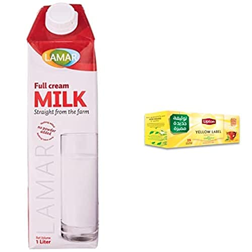 Lamar - Lamar Full Fat Milk - 1 Liter & Lipton Yellow Label Black Tea - 25 Tea Bags (شاي باللبن)