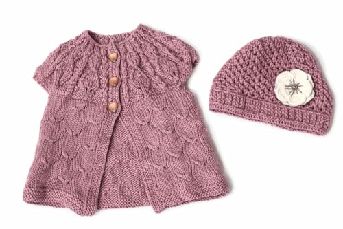 Generic - Lamasaty Handmade Knit Baby Dress & Hat Set – Mauve Baby Outfit with Buttoned Dress and Matching Hat (3 Months)