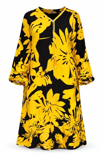 Generic - عباية لمساتي مطبوعة بالزهور للنساء - فستان ماكسي محتشم بلون أصفر وأسود مع ربطة عنق بشراشيب - ملابس كاجوال أنيقة (مقاس اكس لارج XL)