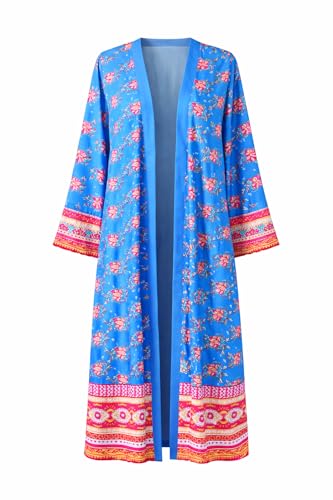Generic - Lamasaty Women’s Handmade Blue Floral Silk Kaftan – Open-Front Long Kimono with Decorative Borders
