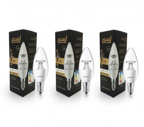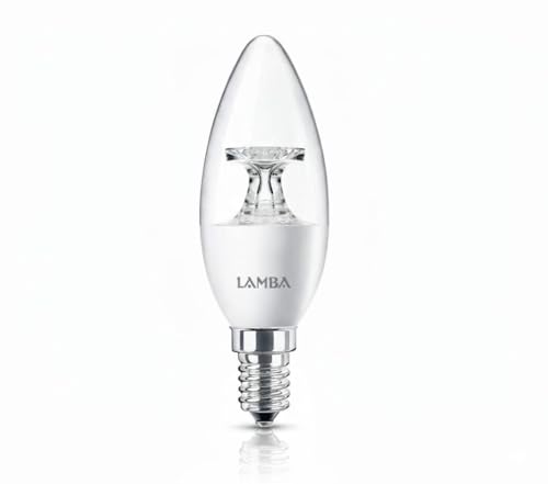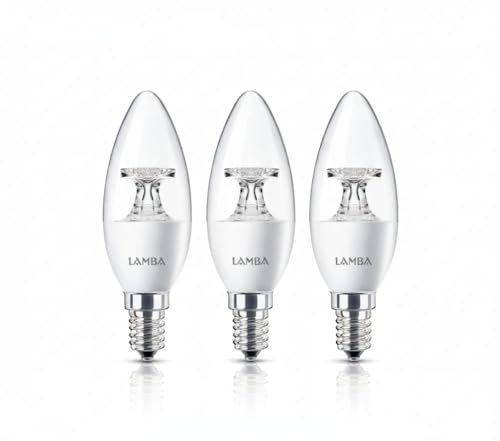 LAMBA - LAMBA C37 7W LED Dowel Light Bulbs Transparent, 90% Energy Saving, 30,000 Hours Lifespan, A++ Efficiency, Bright Light (3 Pieces), White