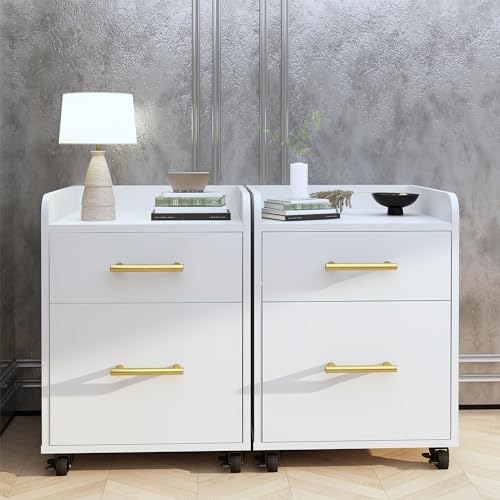 Lamerge - Lamerge 2 Drawers Mobile File Cabinet Pack of 2, Vertical Filing Cabinet Printer Stand with Lockable Casters, Under Desk Rolling Mobile Chest Cabinets, Storage Organizer Filing Cabinet for Home Office