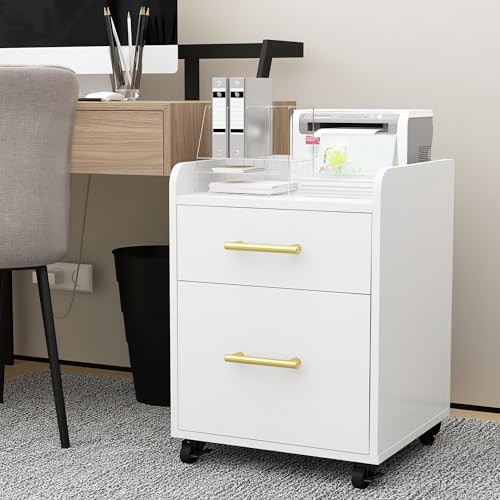 - EASY TO MOVE --- This mobile file cabinet can fix or move around your home office freely. Built-in brakes on front 2 lockable casters to keep it in position and add stability.