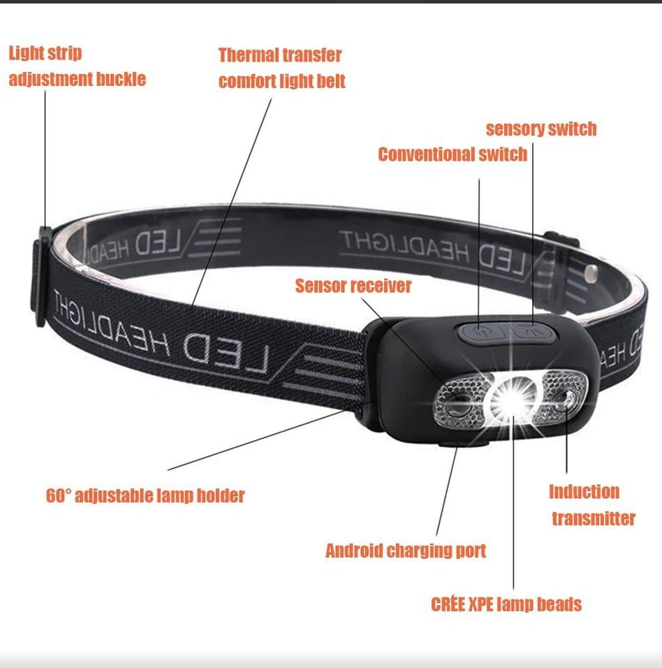 Generic - Lamp Head 30000 Lumen USB Rechargeable Body Motion Sensor Headlight Outdoor Camping -5 Lighting Modes