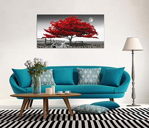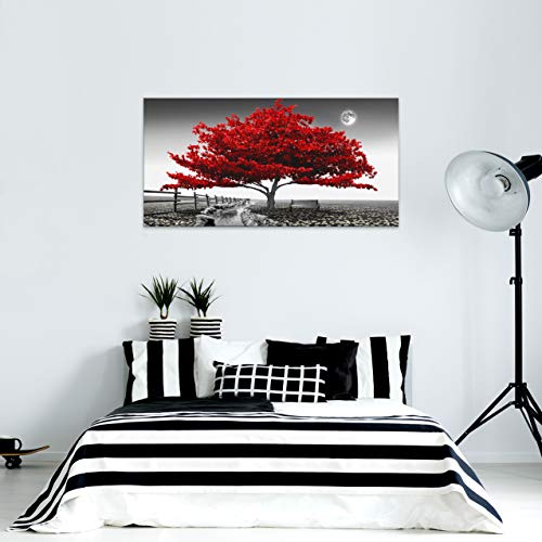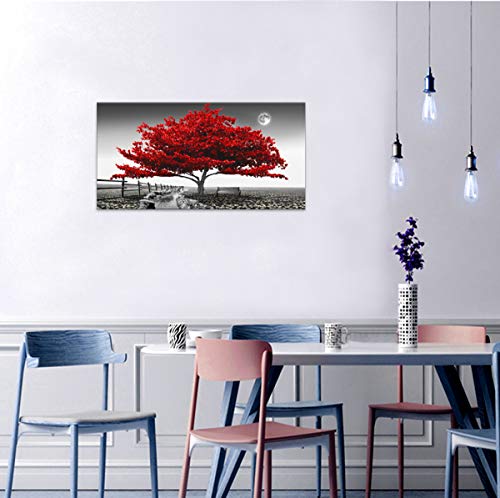JLXART - Landscape Pictures Wall Art for Bedroom living Room Red Tree Canvas Wall Decor 1 Pieces Modern Canvas Print Artwork Nature Pictures Painting Giclee Prints Framed for Home Office Decor 24" x 48"inch