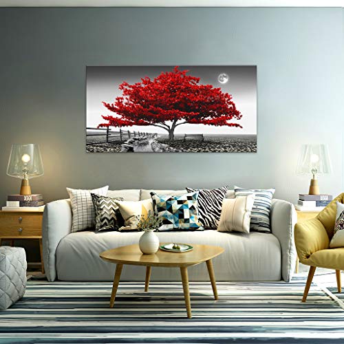 - Large Wall Art Red Tree Landscape Pictures Size:24x48inch