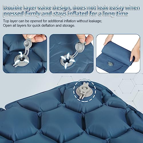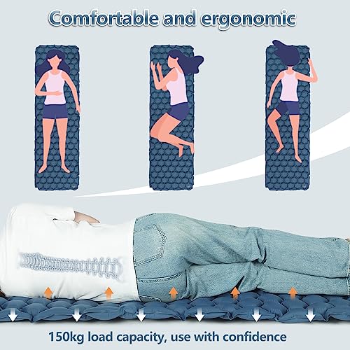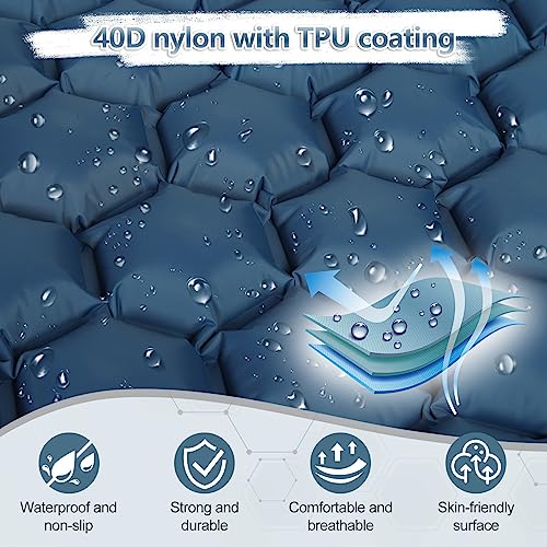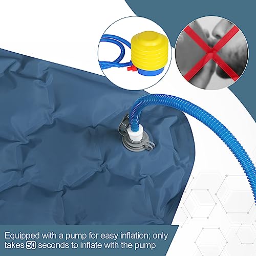 - The inflatable mat is non-slip and wear-resistant. The surface of the air mattress is full of hexagonal bumps for good balance and bring you a better sleep