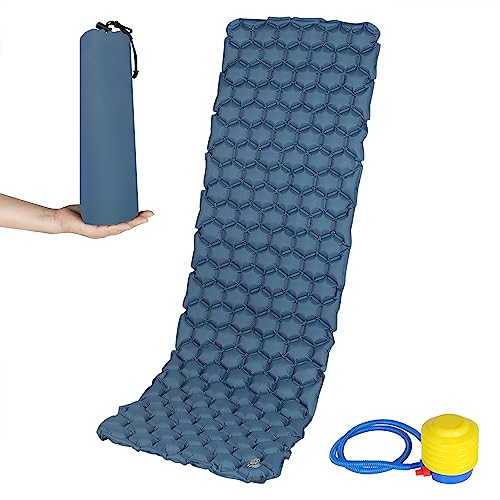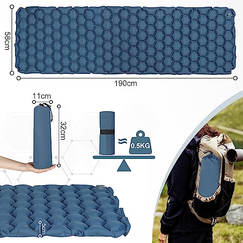 Laneetal - Laneetal Camping Mattress, Ultra-Light Air Bed, Air Cushion with Inflatable Pump and Carry Bag for Travel/Beach, Blue, 190 x 58 x 5 cm