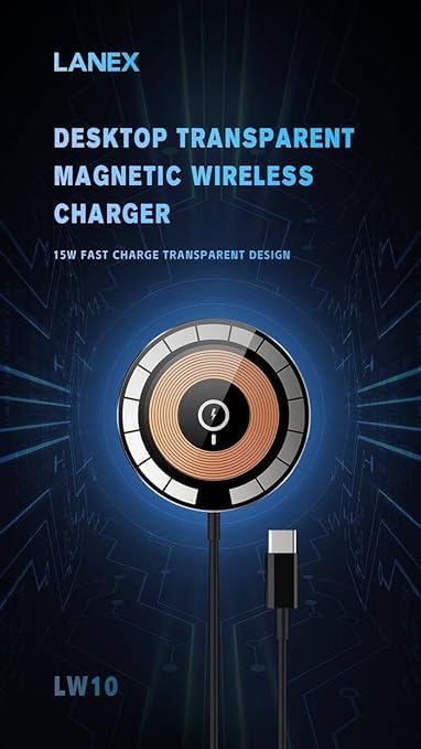 Generic - شاحن لاسلكي مغناطيسي شفاف 15 وات LW10 من لانكس