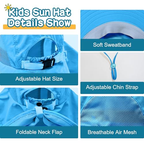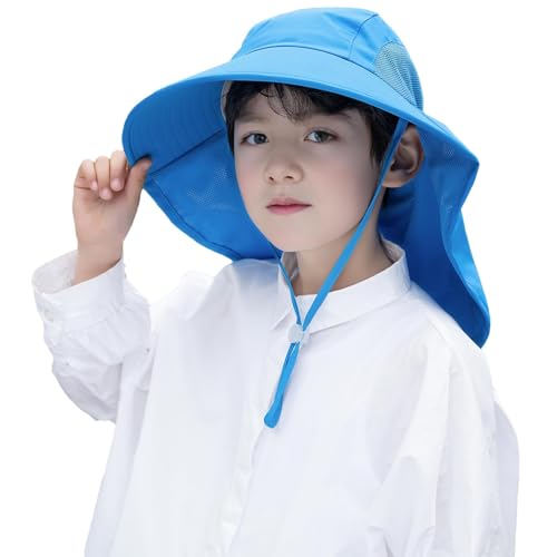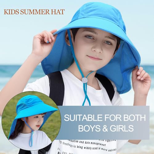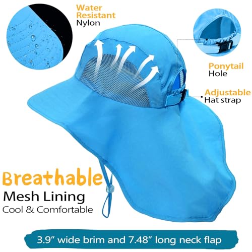 Langthering - قبعة شمس للاطفال من لانجثيرينج مع غطاء للرقبة للحماية من الاشعة فوق البنفسجية، قبعة شاطئ صيفية للاطفال من الجنسين، قبعة ذيل الحصان، قبعة كبيرة بحافة عريضة لصيد الاسماك للاعمار من 3-12 سنة