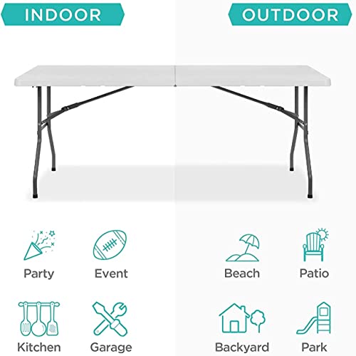 LANNY - طاولة بلاستيكية محمولة قابلة للطي مقاس 156 × 75 سم تتسع لـ4-6 أشخاص للحفلات/النزهة/الحديقة/الطعام/المطبخ/البوفيه/المطعم (أبيض، 1.5 متر) من لاني