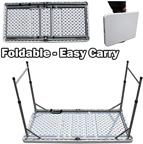 LANNY - LANNY Portable Plastic Folding Table SZK180/120 Wood Design 120 * 60cm for 4 person Party/Picnic/Garden/Dining/Kitchen/Buffee/Restaurant (white1s)