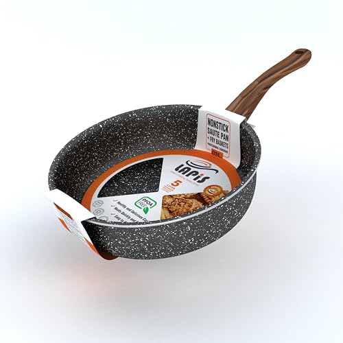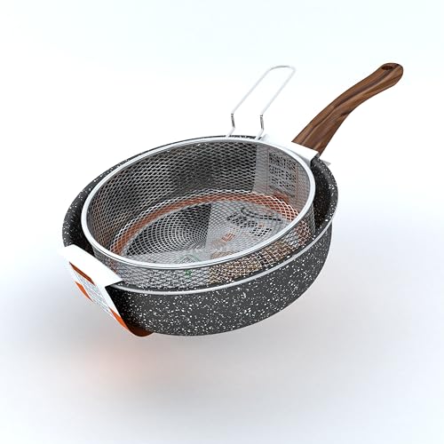 LAPIS - LAPIS Granite Suate Pan Size 24 cm Black With Stainless Steel Strainer 2 Piece