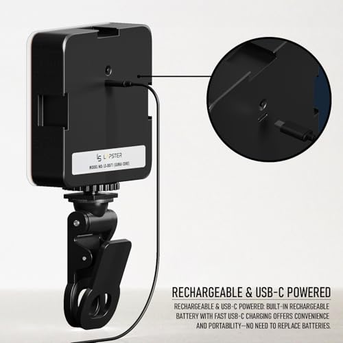 LS LAPSTER Quality Assured - Lapster Luma core LED Video Light for Video Shooting YouTube,Zoom Meeting, Photography Lighting with Clip Dimmable and Rechargeable for Camera Selfie Stick Tripod Laptop Cellphone and Other Gadgets