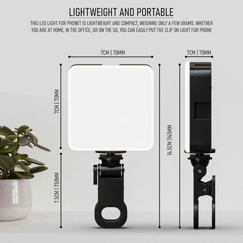 - 📎 Clip-On Design for Maximum Flexibility Featuring a 180° rotatable clip, this light securely attaches to phones, tablets, laptops, and more. The non-slip pads protect your devices from scratches while ensuring a firm hold—perfect for video shooting youtube, Zoom meetings, online classes, or live streaming.