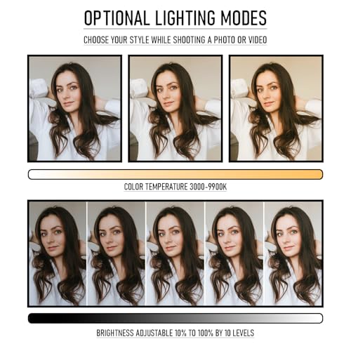 - 💡 Adjustable 3 Color Modes Easily customize your lighting with this dimmable LED light.It offers a wide color temperature range from 3000K to 9900K and three light modes—White, Warm & Natural Adjust brightness smoothly making it ideal for video shooting youtube , content creation, photography, and more.