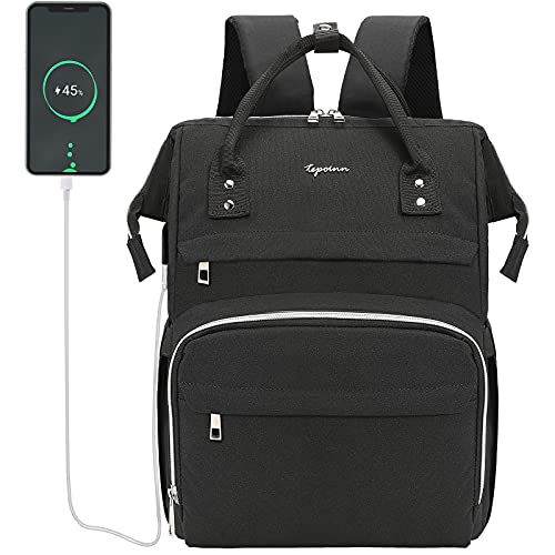 Tepoinn - Laptop Backpack for Women Men, 15.6 Inch Travel Anti Theft Business Computer Purse Work Bag with USB Charging Port, Tepoinn Stylish College High School Backpacks Bookbag Gifts for Hiking Picnic, Black