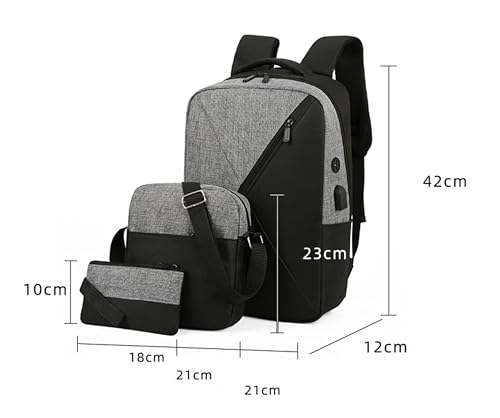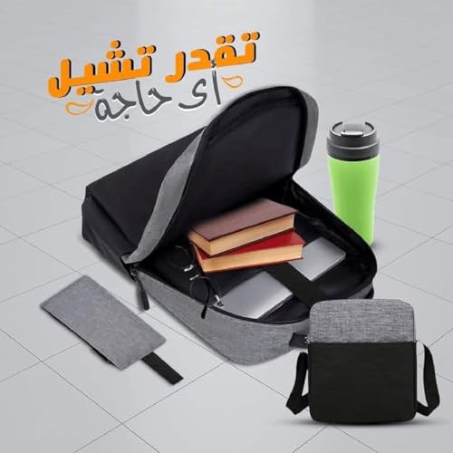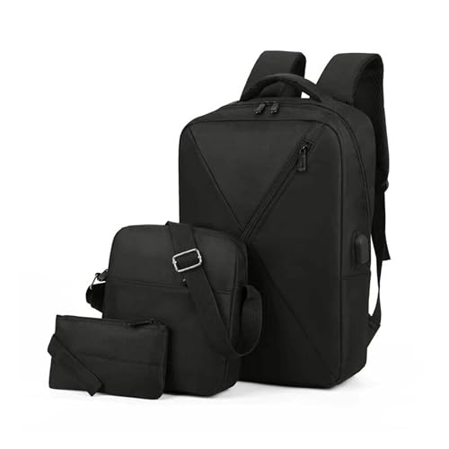Generic - طقم شنطة لاب توب من ثلاث قطع، شنطة ظهر مدرسية للكتب الجامعية وشنطة كتف للسفر للبنات والنساء وشنطة خروج بمنفذ USB للاولاد والرجال بسعة كبيرة