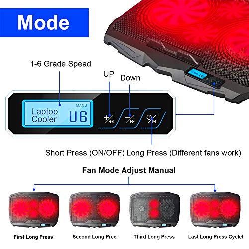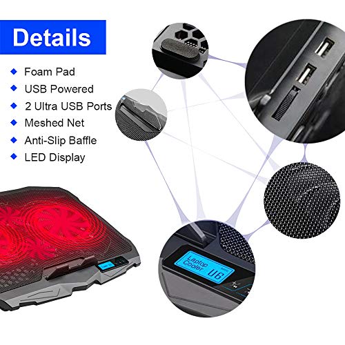 - aRiamoon Laptop Cooler Red LED Light 4 Quiet Laptop Cooling Fan 2 USB Ports Lap Desk Air Cooling Pad with LCD Display Notebook Cooler Stand for 10inch-15.6inch PCBrand: aRiamoonPackage height: 4.8 centimeters
