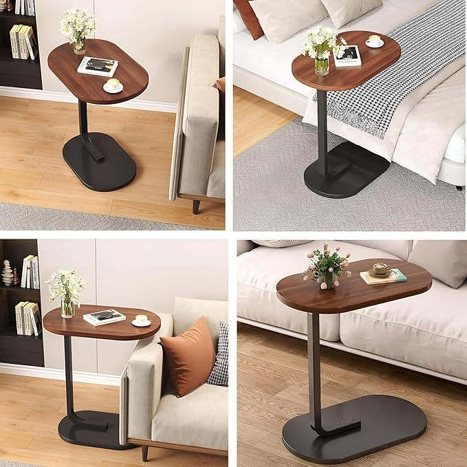 - The C-shaped end table features a minimalist modern design, combining durable metal and wood materials to ensure stability and a sleek look, making it a versatile addition to living rooms, bedrooms, or offices.