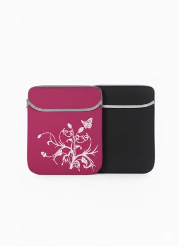 - REVERSIBLE DESIGN: Neoprene laptop sleeve features two distinct sides - vibrant pink with elegant floral butterfly pattern and classic black for versatile styling options